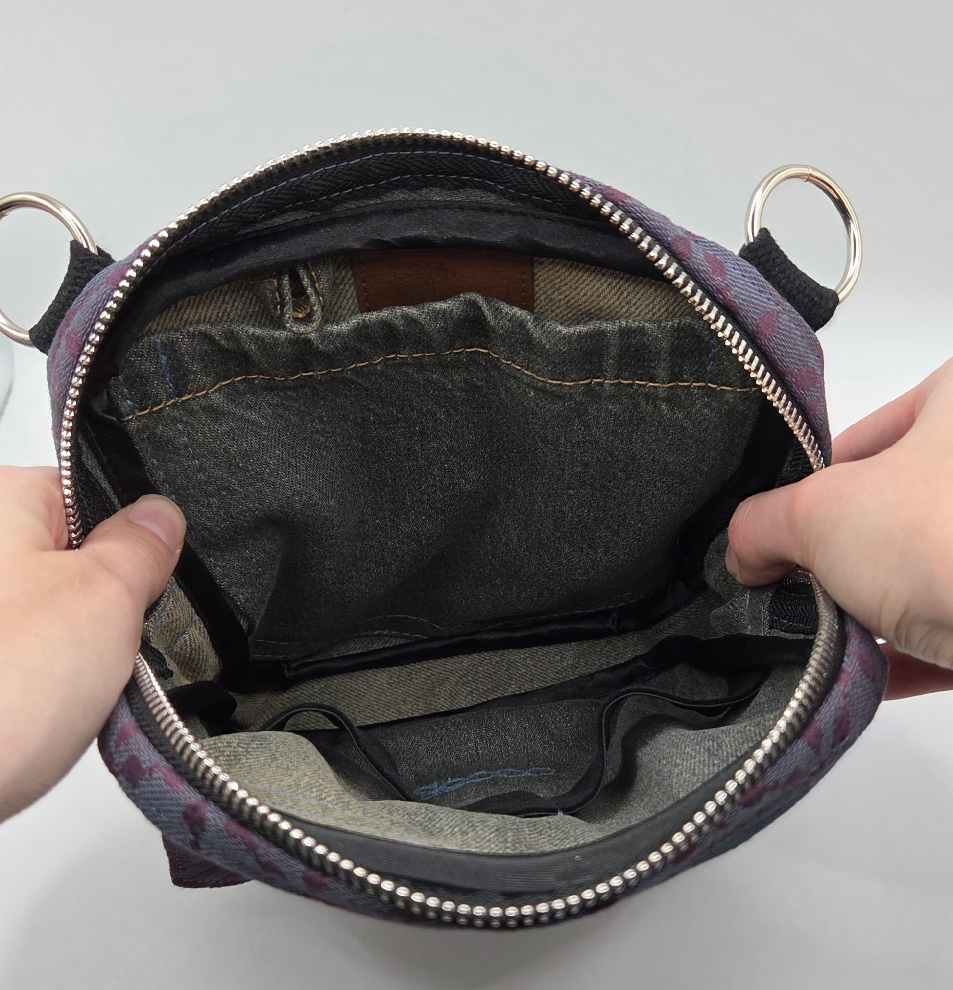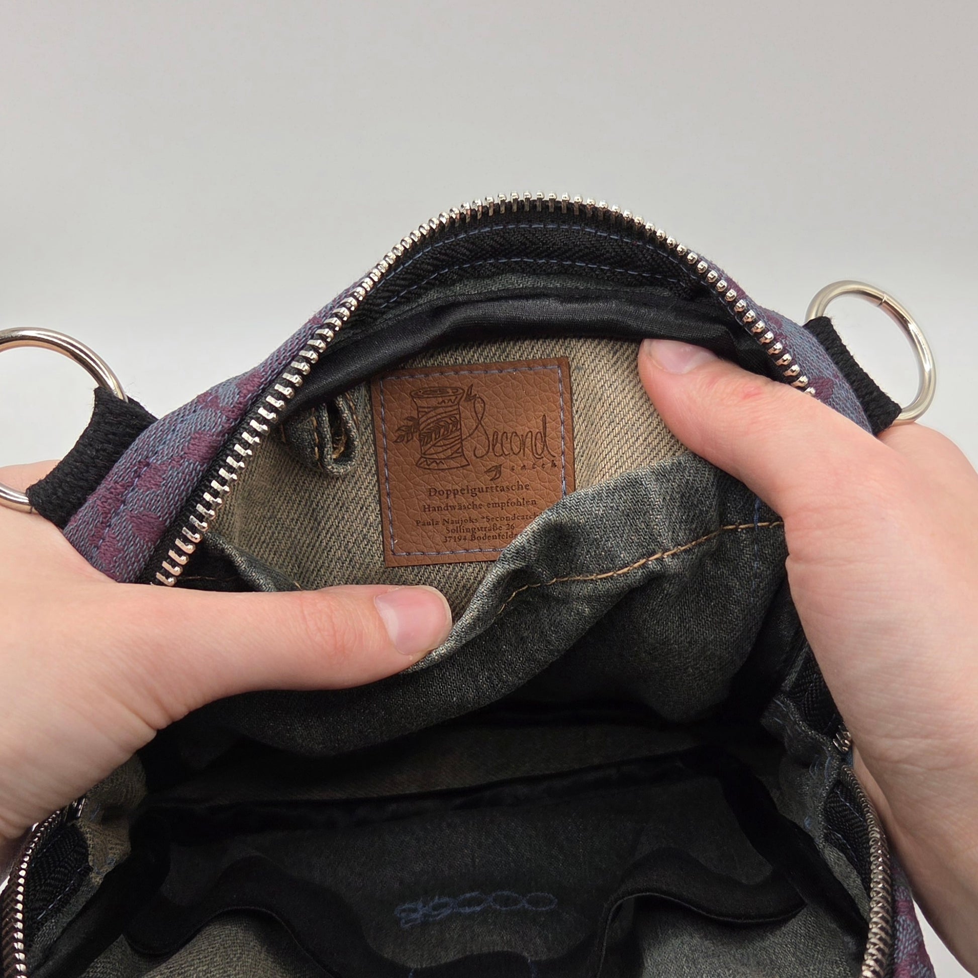- Jede Tasche ist ein handgefertigtes Unikat aus Secondhand-Textilien. Farbausbleichungen oder leichte Gebrauchsspuren sind materialbedingt und stellen keinen Mangel dar.