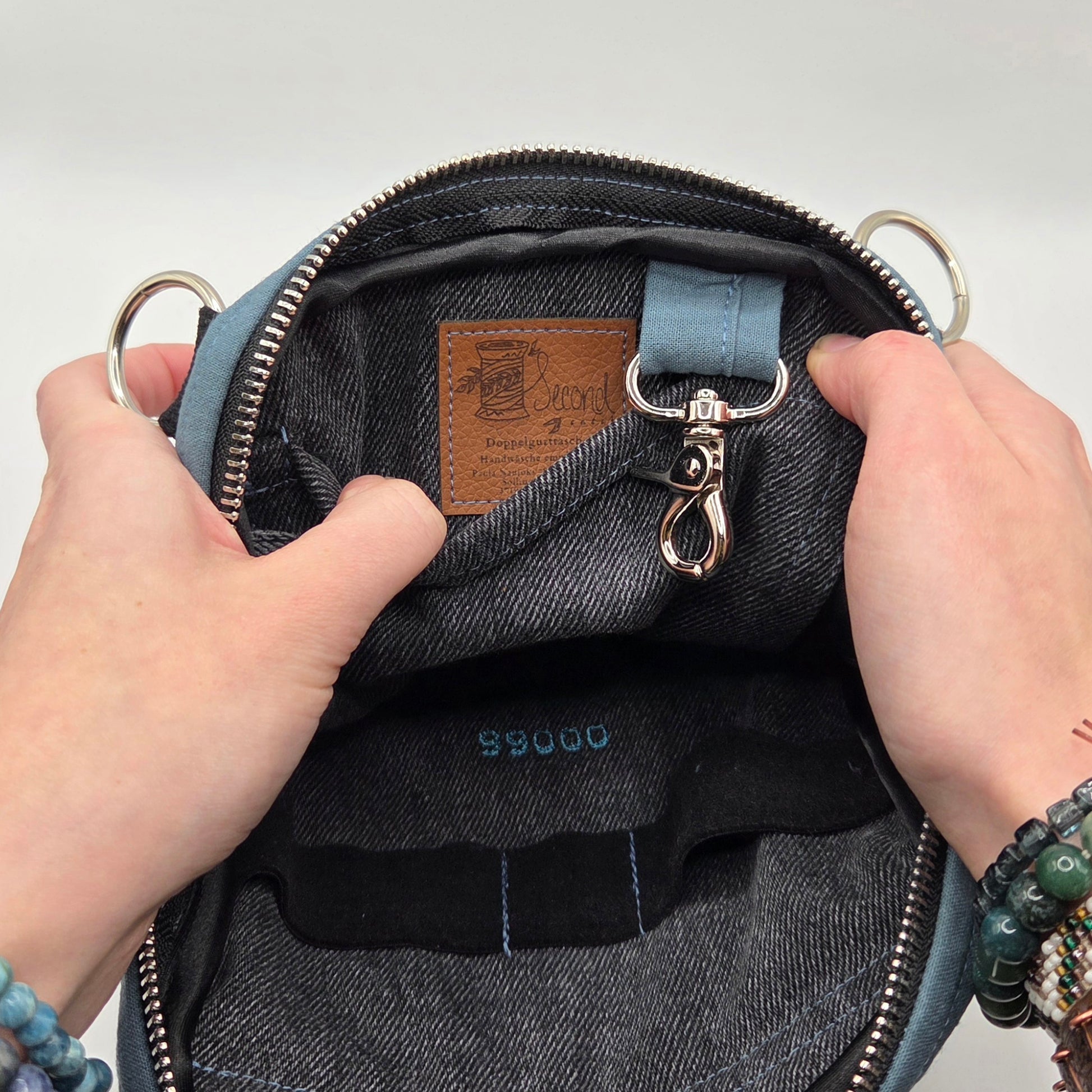 - Jede Tasche ist ein handgefertigtes Unikat aus Secondhand-Textilien. Farbausbleichungen oder leichte Gebrauchsspuren sind materialbedingt und stellen keinen Mangel dar.