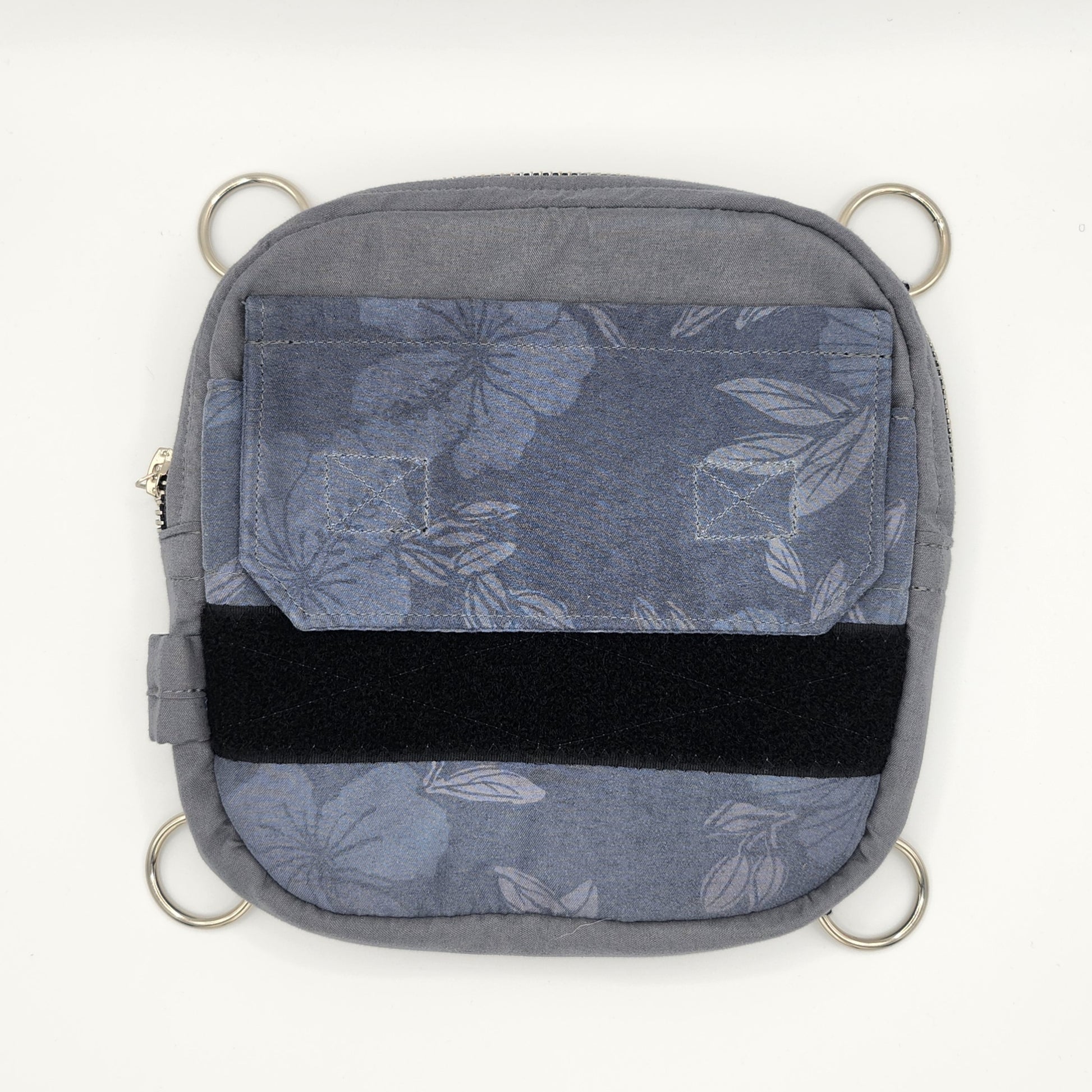 Farbe: grau, bläulich lila Blumenmuster, schwarze Details (Farben können leicht von den Bildern abweichen)