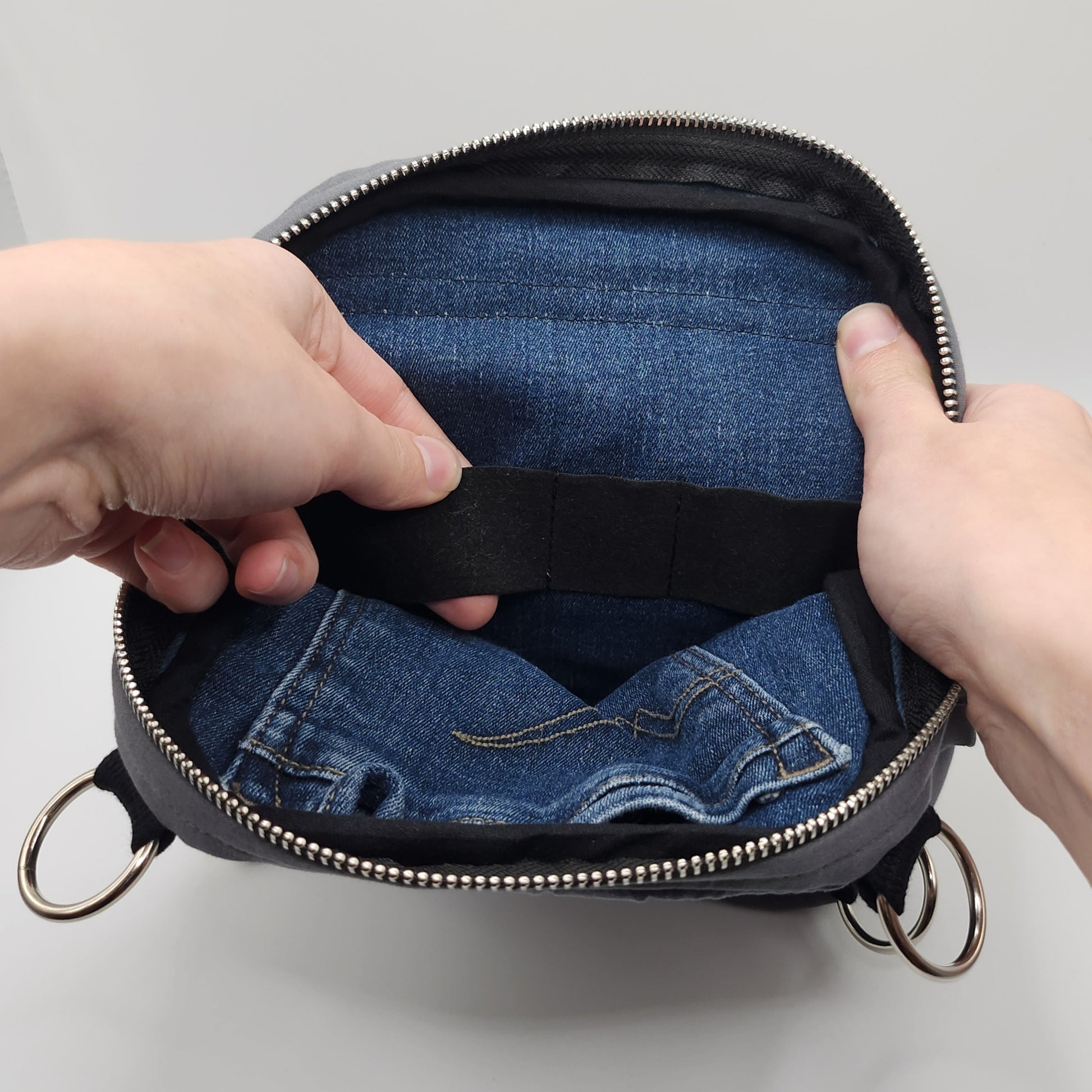 - Tasche ist nicht als Schutzausrüstung geeignet und darf nicht zum Tragen oder Sichern von Personen oder Lasten verwendet werden.