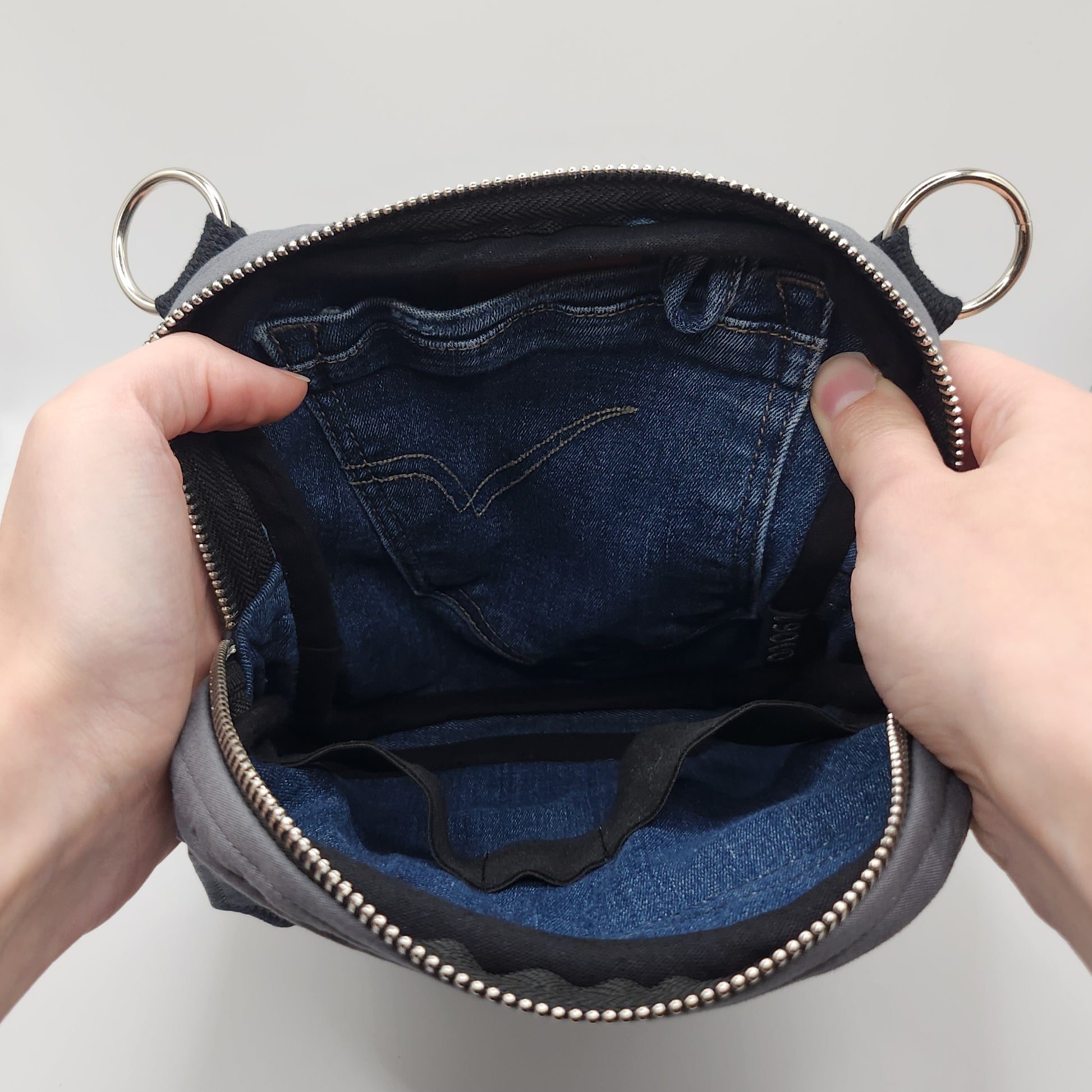- Jede Tasche ist ein handgefertigtes Unikat aus Secondhand-Textilien. Farbausbleichungen oder leichte Gebrauchsspuren sind materialbedingt und stellen keinen Mangel dar.