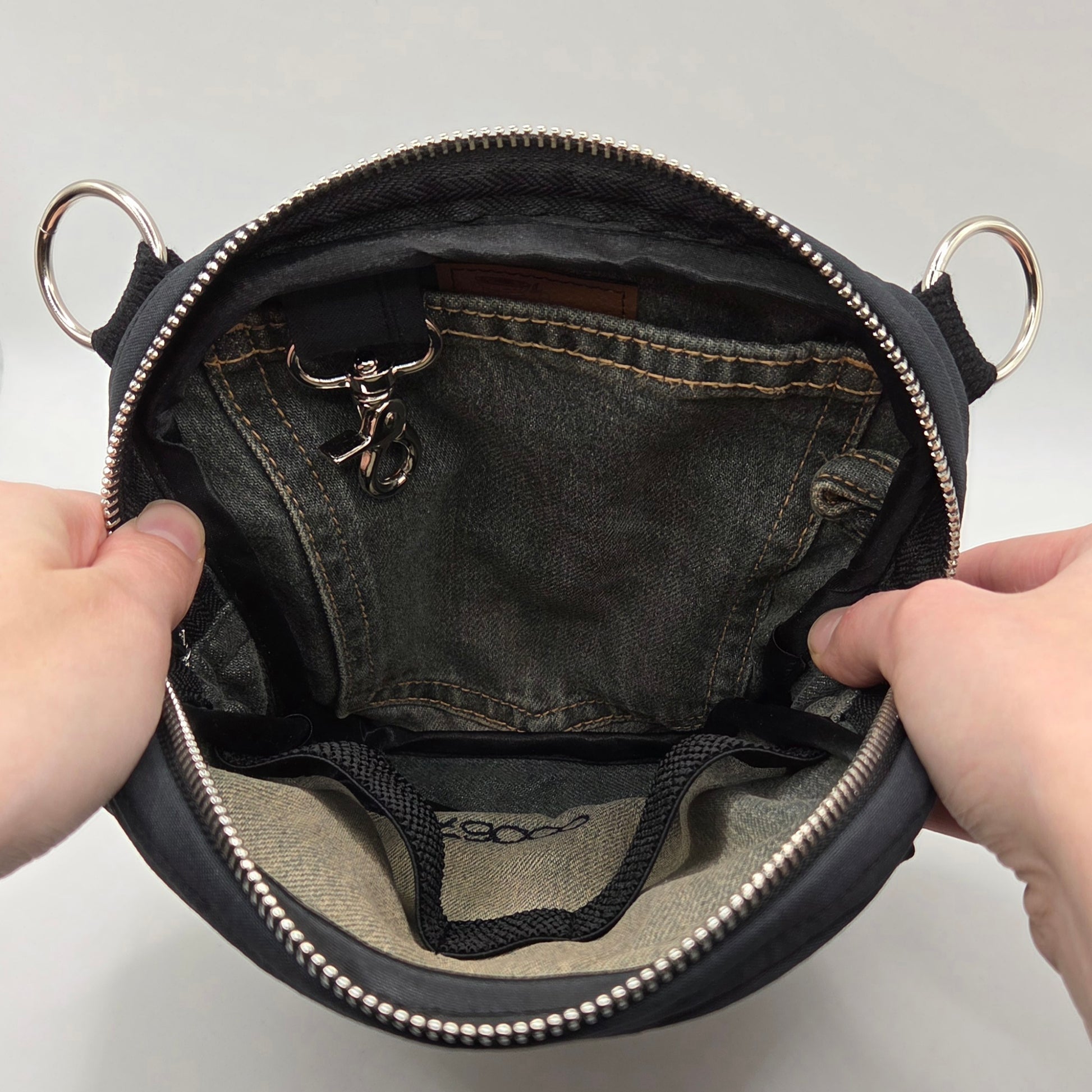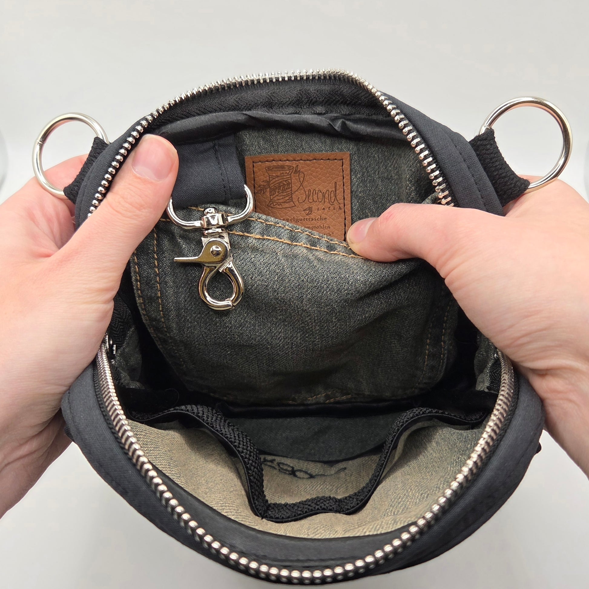 - Jede Tasche ist ein handgefertigtes Unikat aus Secondhand-Textilien. Farbausbleichungen oder leichte Gebrauchsspuren sind materialbedingt und stellen keinen Mangel dar.