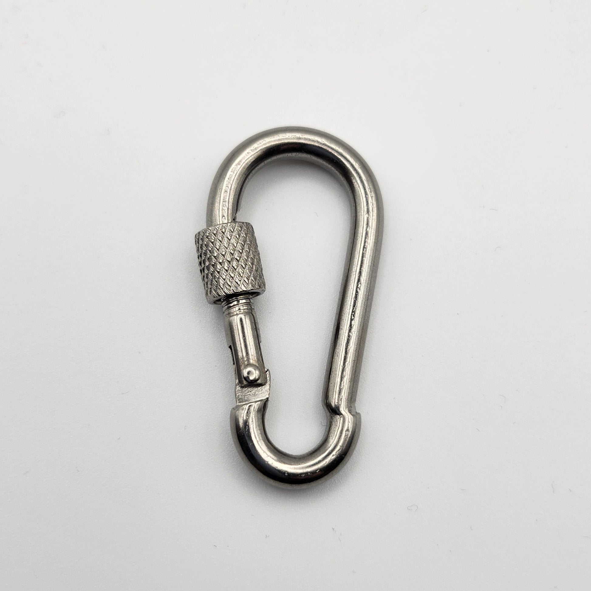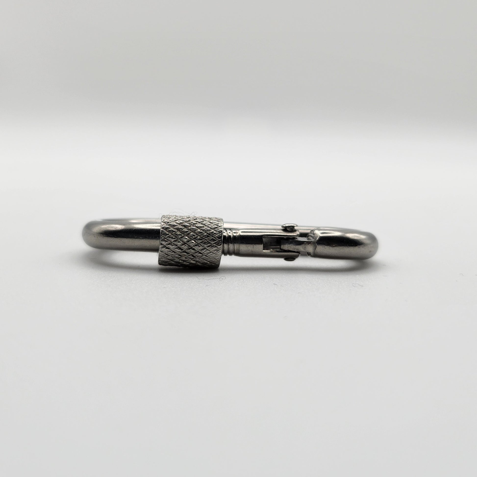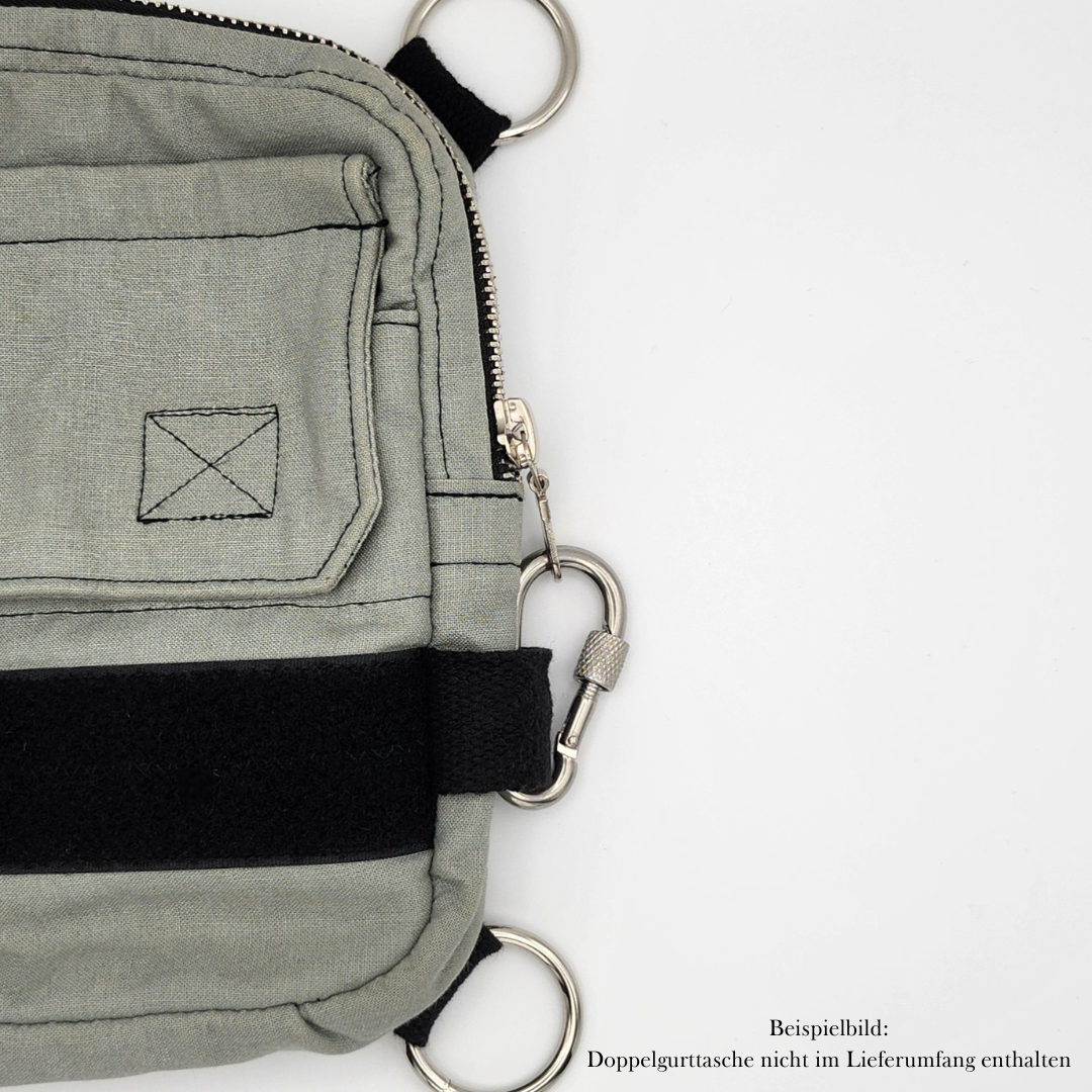 Sichere den Reißverschluss deiner Doppelgurttasche zusätzlich mit diesem Sicherheitskarabiner mit Schraubgewinde zur zusätzlichen Verriegelung.